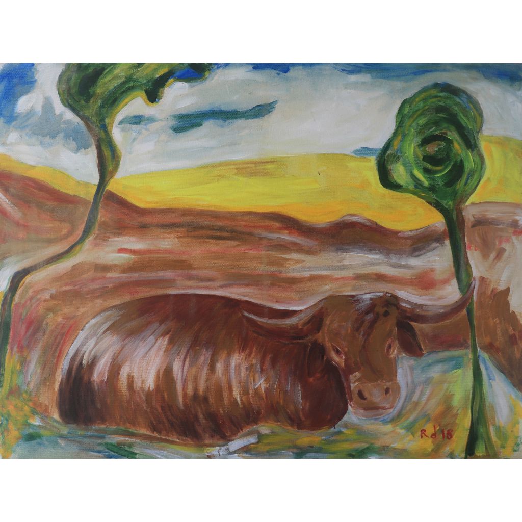 Lukisan ini merupakan salah satu karya dari kegiatan Festival Seni Multatuli (FSM) tahun 2018. Kala itu, 20 perupa asal Banten mencoba melukiskan imajinasinya berdasarkan gelaran Karnaval Kerbau; salah satu rangkaian acara FSM (tepatnya 9 September 2018) dengan menghadirkan iring-iringan kerbau, berjalan dari utara Jl. Multatuli hingga alun-alun Rangkasbitung. Kegiatan melukis oleh 20 perupa itu dilakukan secara langsung (on the spot) di ruang terbuka selama karnaval kerbau berlangsung, memungkinkan pengunjung dan penonton menyaksikan proses kreatifnya. Selain itu, kegiatan ini juga menjadi sarana edukasi visual dan dialog antara seniman dan masyarakat mengenai makna simbolik kerbau dan sejarah lokal.